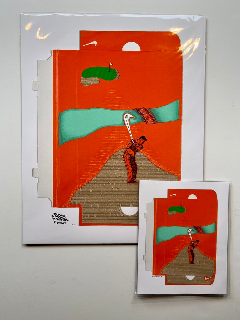 Hard PVC Cutout- This is the one to go with if you want a physical piece. The SAME size as the OG shoebox (roughly 10x13"). Outfitted with a hanging hook on the back, this piece can go RIGHT ON THE WALL without a frame. Hand cut and hard surfaced. LIMITED to 75 , Signed and numbered on back. A truly unique way to hang and own the ShoeBoxSeries.