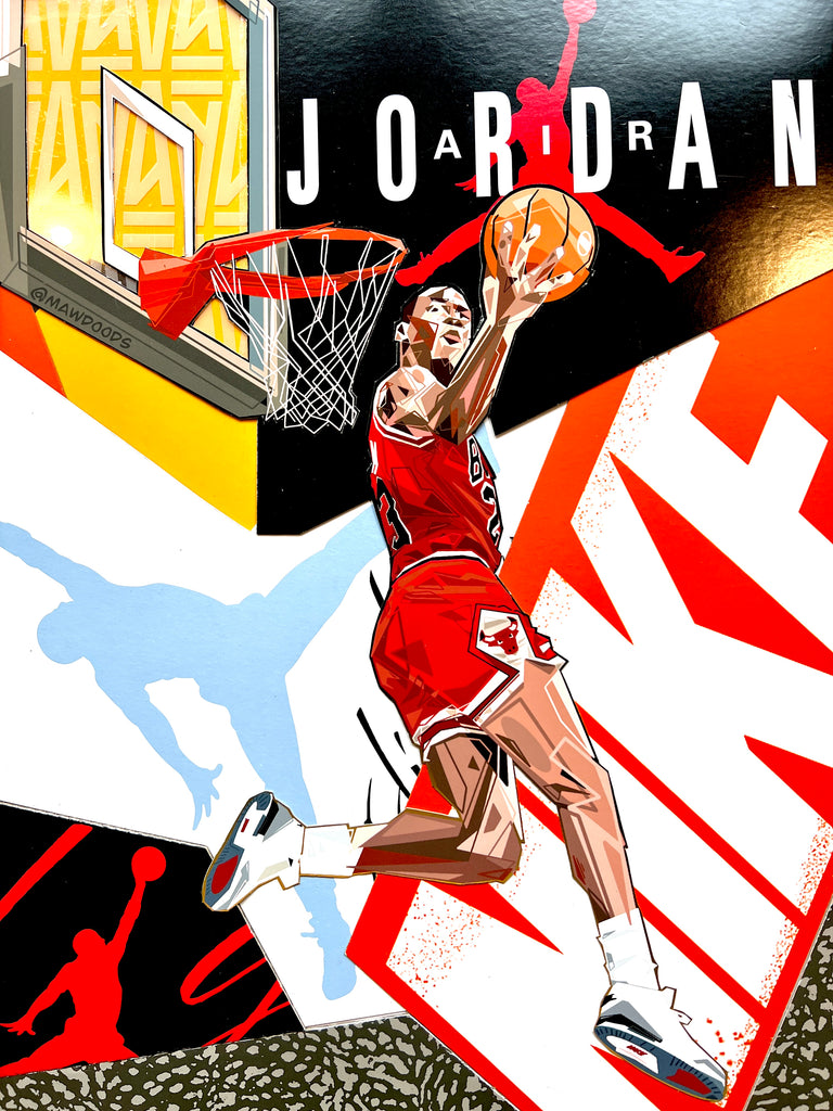 Original "Kixed Media" piece featuring MJ from the 88 dunk contest