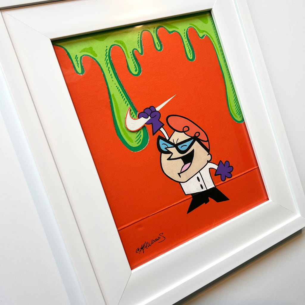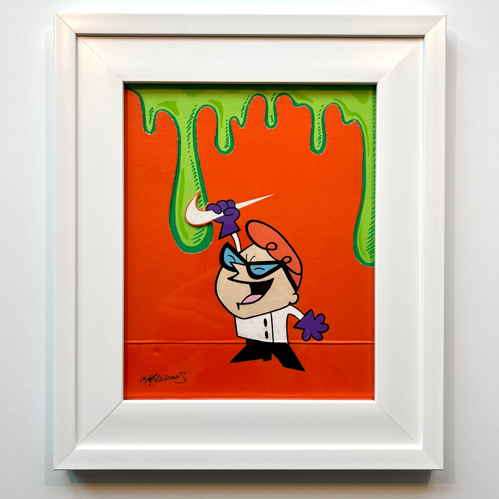 Original work is 8x10" framed in a frame that overall sits closer to 10x12". Piece has some dimension with the slime sitting behind the carved shoebox.