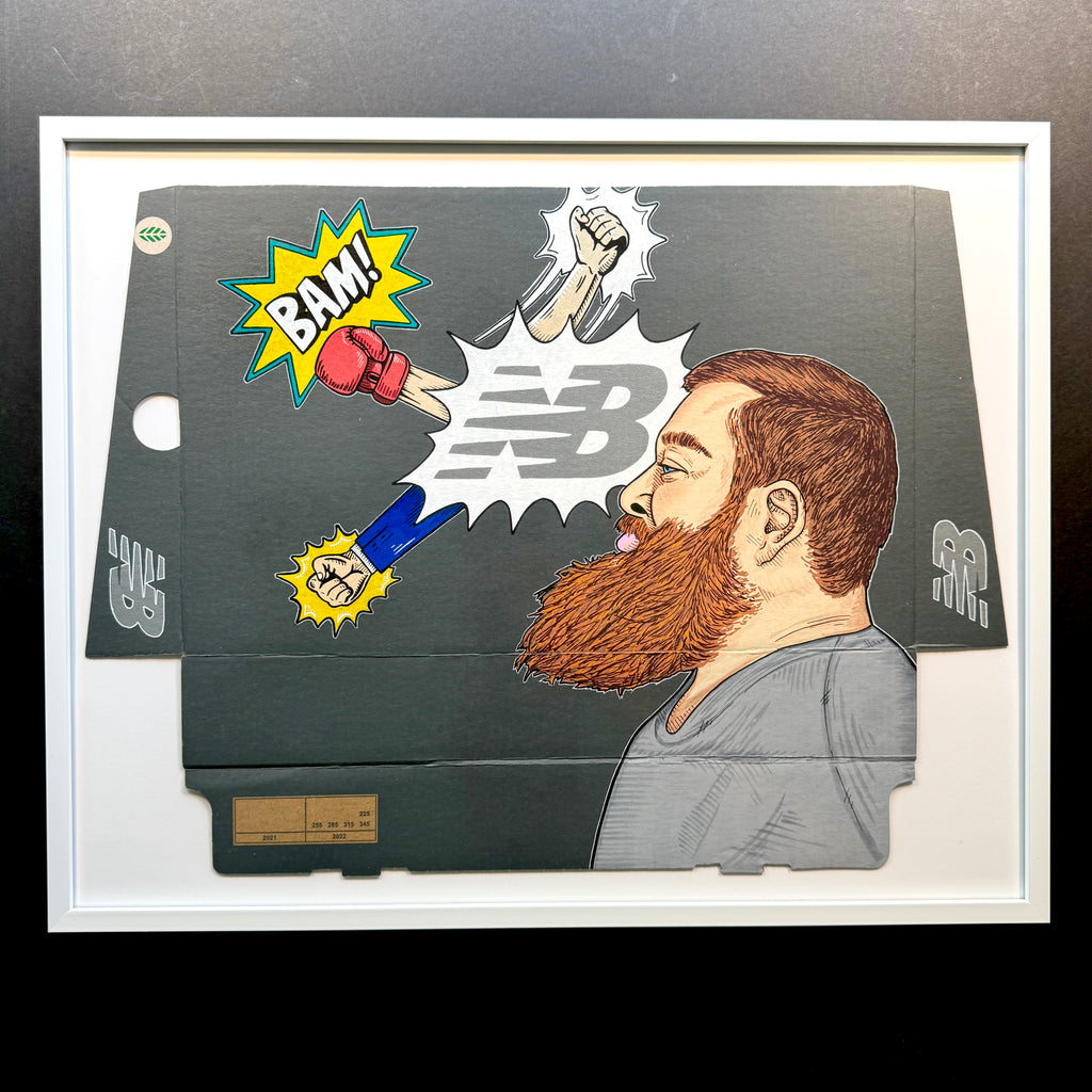 Original piece featuring Action Bronson on an up-cycled New Balance shoebox.