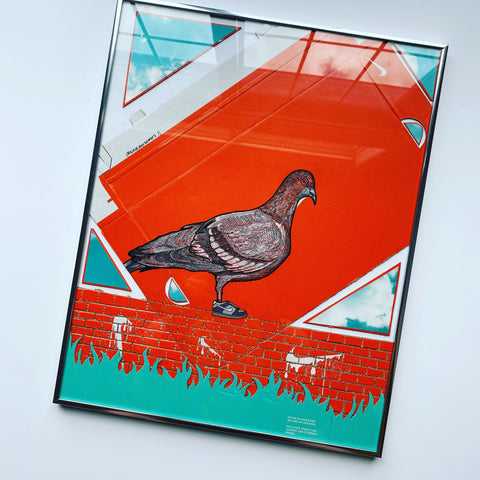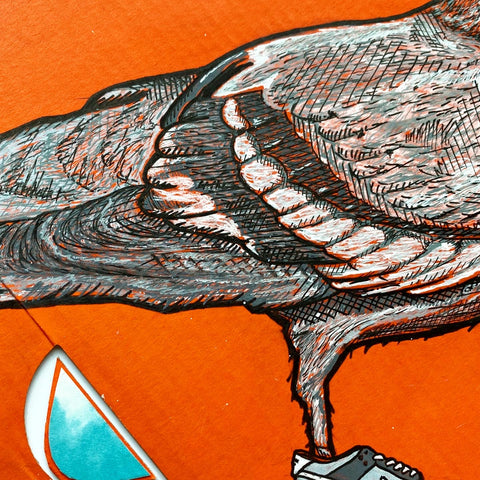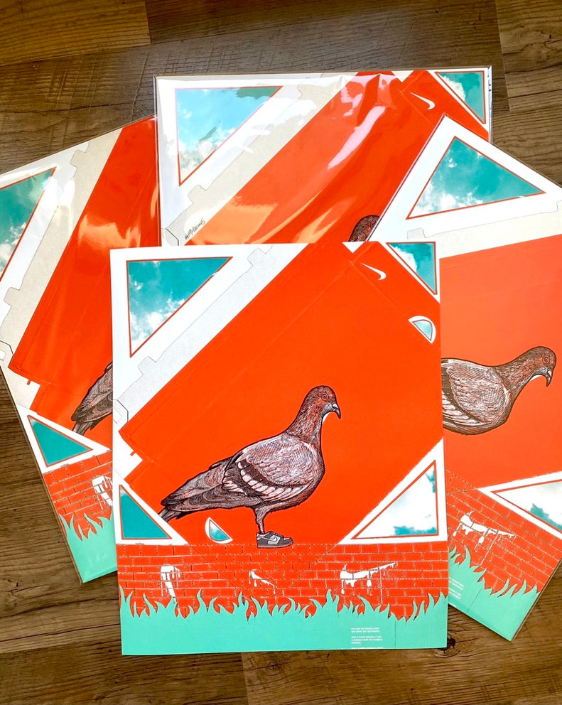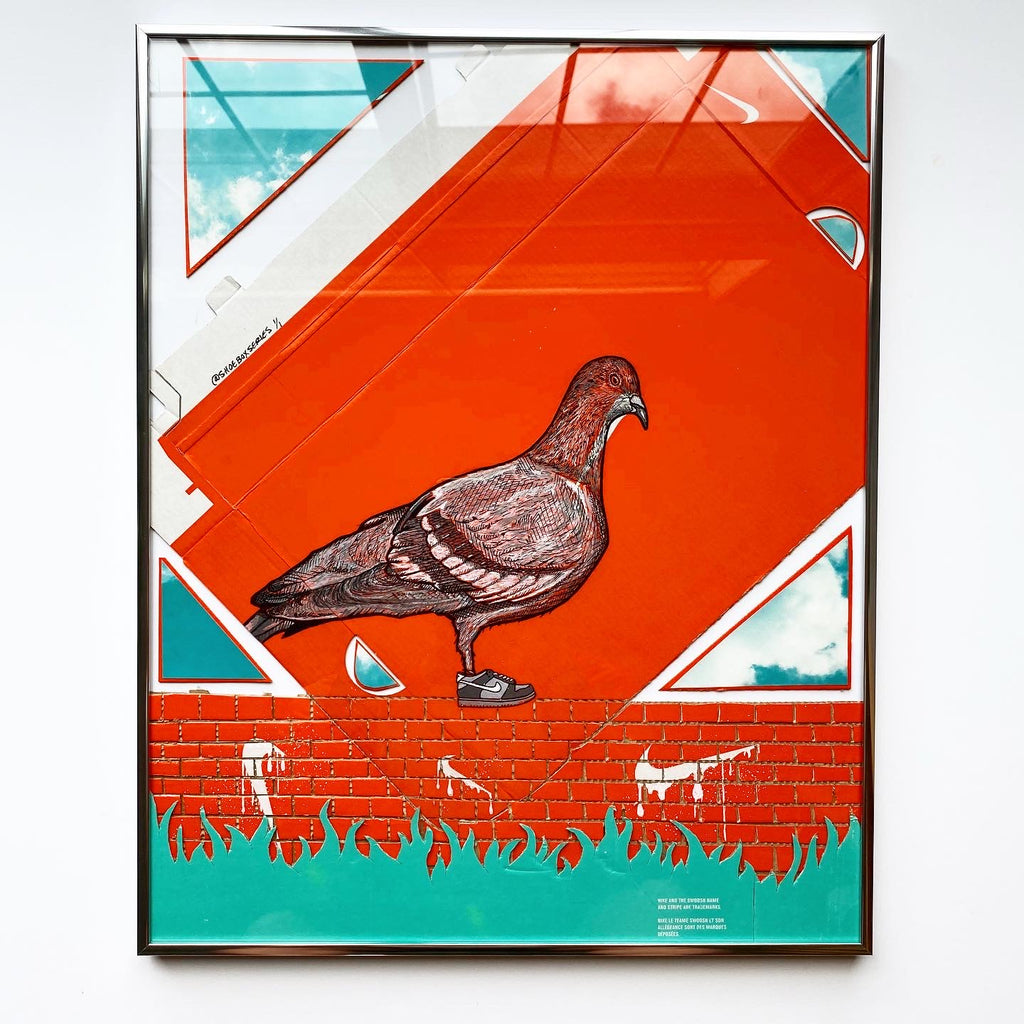 This is an ORIGINAL PIECE of the Shoebox Series.  "Staple Pigeon" pays homage to the popular streetwear brand, Staple.  The pigeon can be seen wearing the highly coveted Staple Pigeon Nike Dunks.
